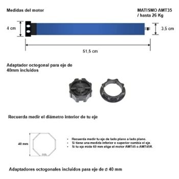 MATISMO Motor para persiana AMT35 - Incluye adaptador para eje 40 mm octogonal