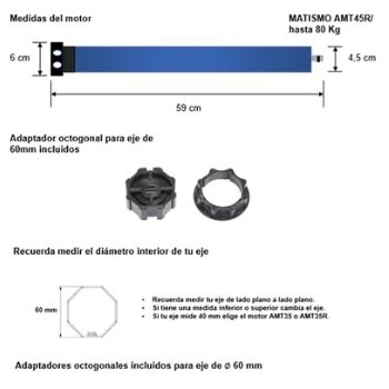 MATISMO Motor para persiana con mando AMT45R - Eje 60 mm - Hasta 80 Kg